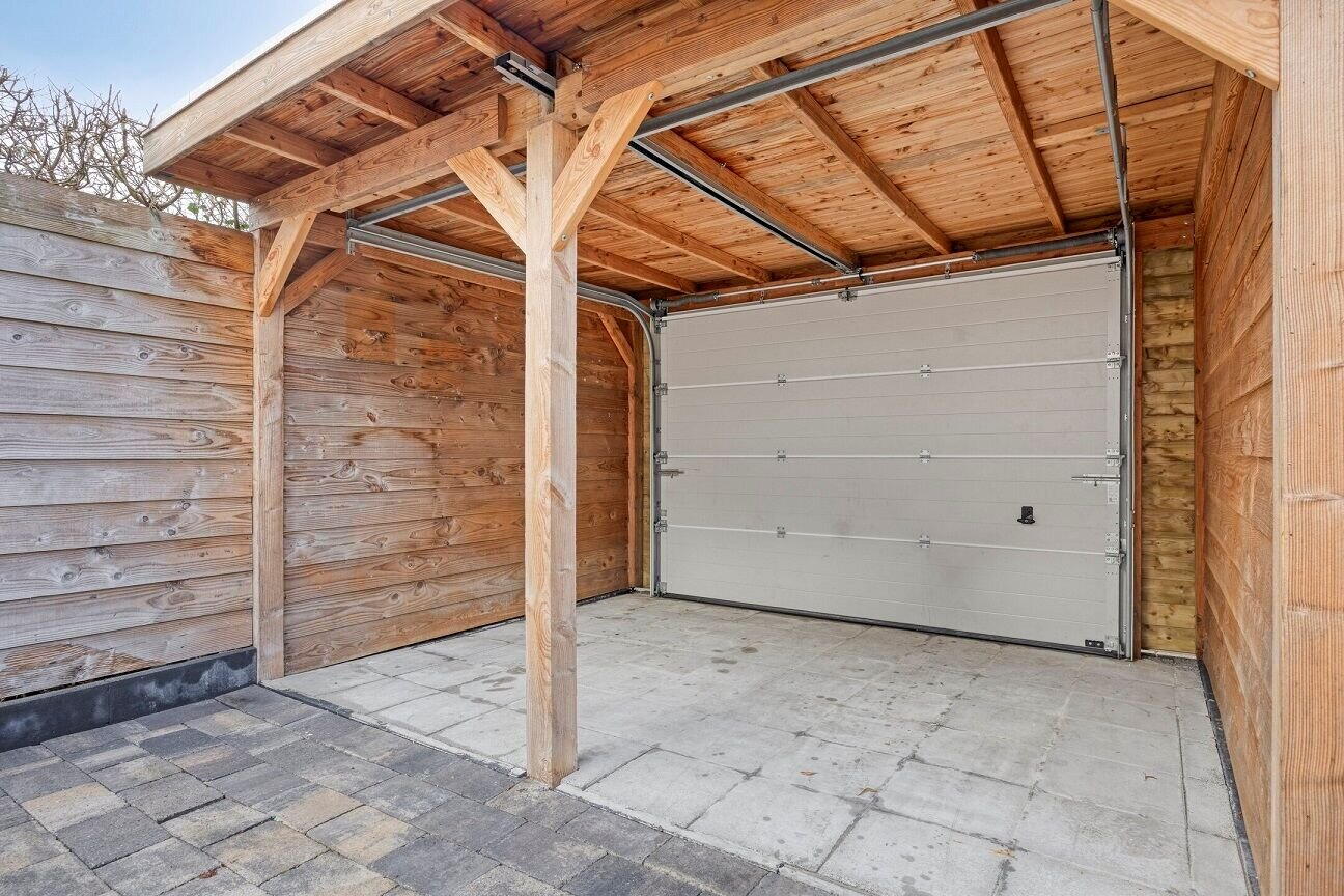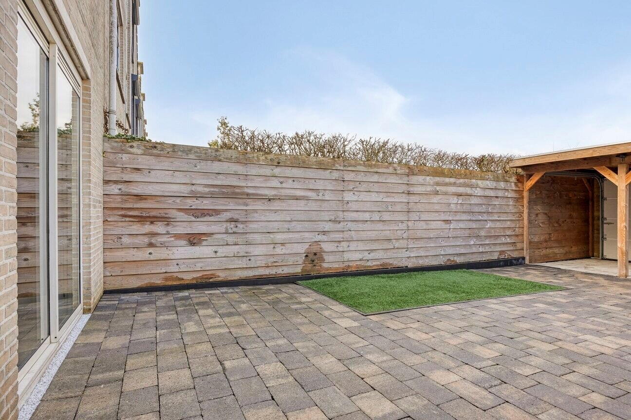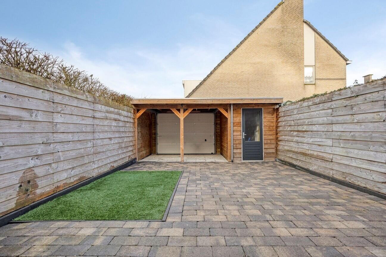 De achtertuin op het noordwesten is een heerlijke plek om te ontspannen. Dankzij de gunstige ligging vindt u altijd een fijne plek in de zon of schaduw. De terrasoverkapping met roldeur maakt het plaatje compleet.
