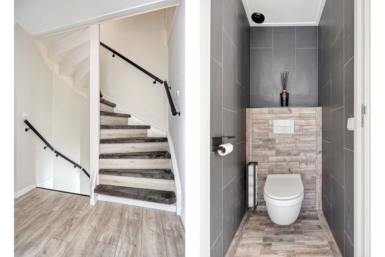 Via de entree betreedt u de woning en komt u in de hal met meterkast (compleet vernieuwd) en toegang tot de ruime, lichte woonkamer. De begane grond is voorzien van comfortabele vloerverwarming en een hoogwaardige laminaatvloer die doorloopt in een strakke, moderne afwerking.