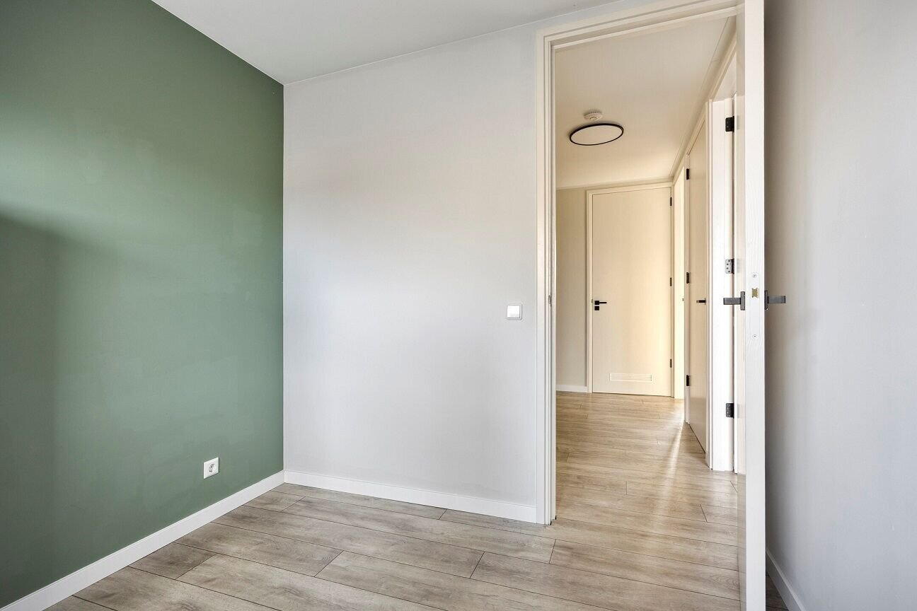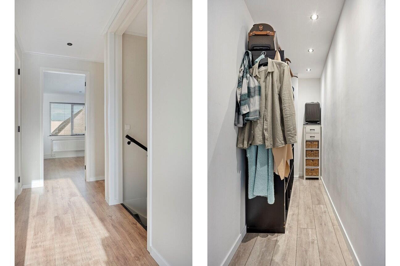 Op de eerste verdieping bevinden zich drie ruime slaapkamers. Alle kamers zijn afgewerkt met moderne laminaatvloeren en lichte wanden, wat zorgt voor een rustige en frisse uitstraling. Achter de ouderslaapkamer bevindt zich een inloopkast wat zorgt voor extra bergruimte en comfort.